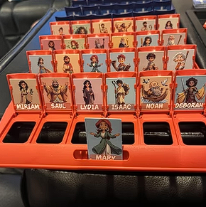 The game is designed for 2 players, just like the classic Guess Who. However, families or church groups often take turns or compete in teams to make it more interactive.