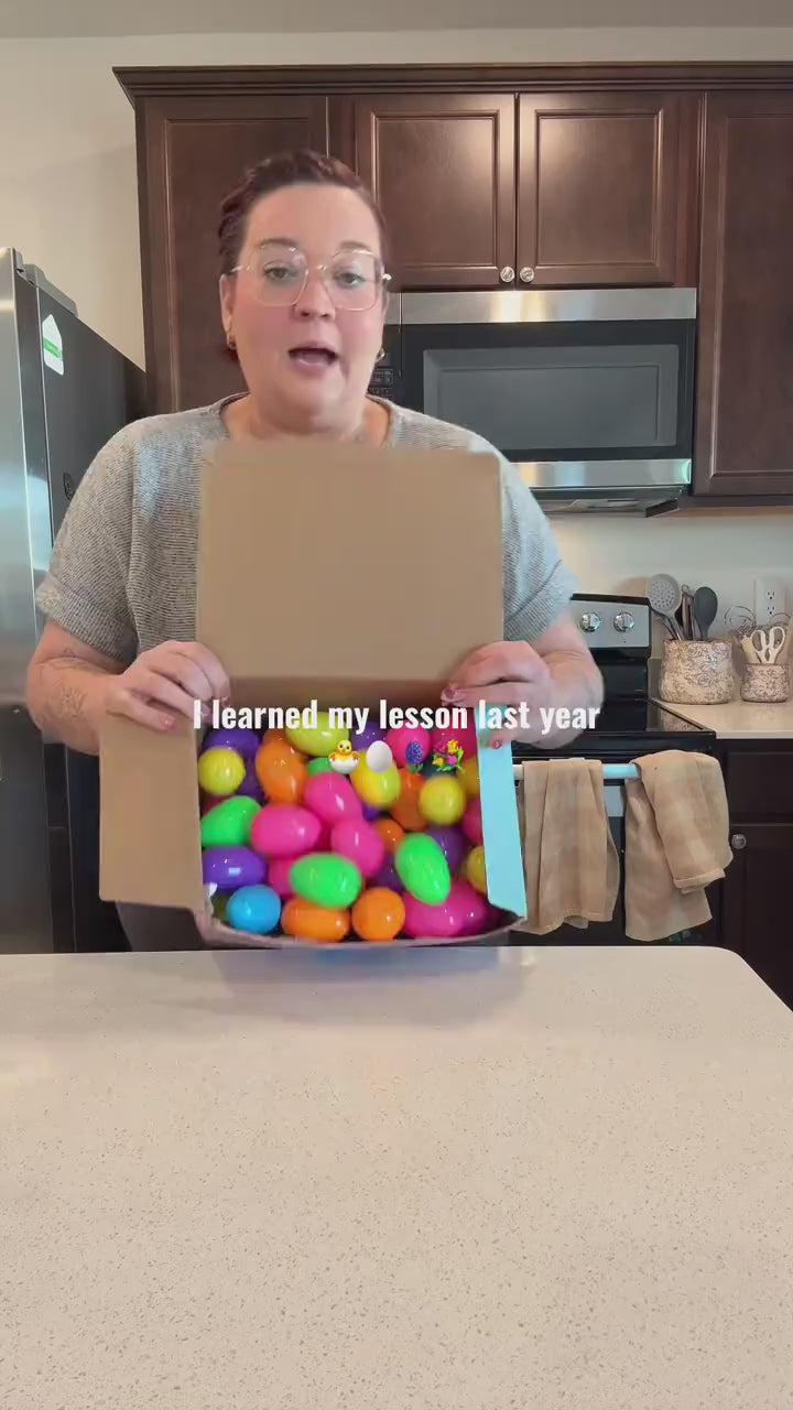 Every egg is already filled with surprises — no buying candy, no stuffing eggs, and no last-minute prep the night before. Simply hide them around your home, yard, or event space and let the Easter hunt begin.